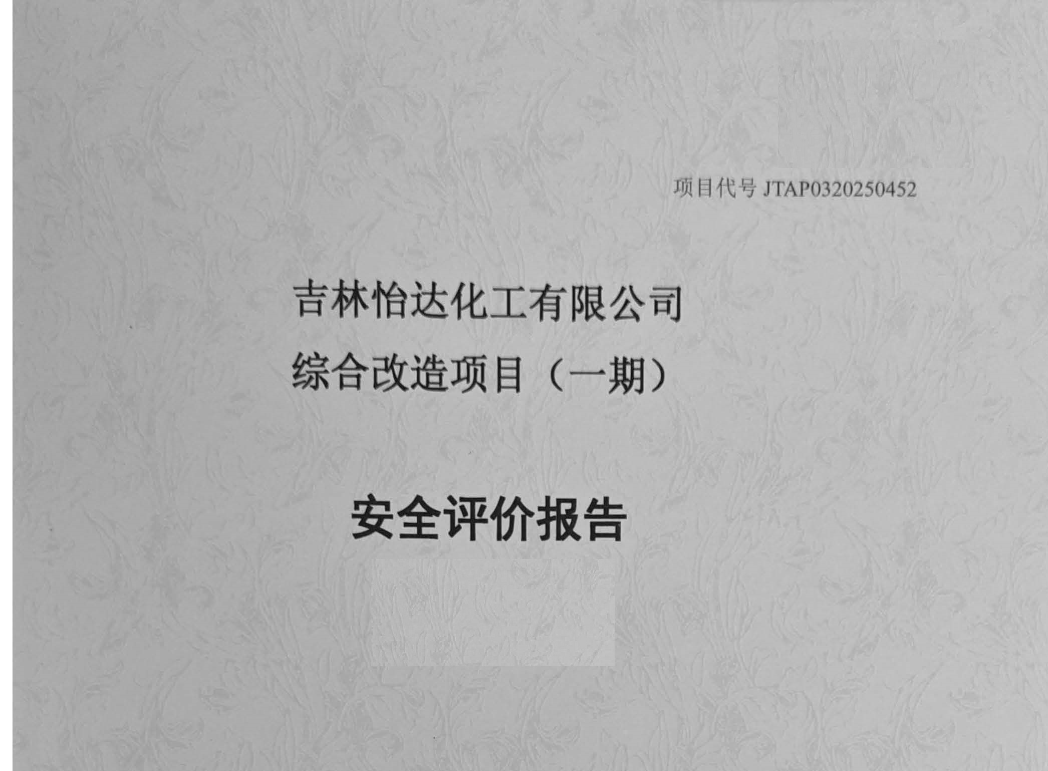 JTAP0320250452--吉林怡达化工有限公司综合改造项目(一期)安全评价
